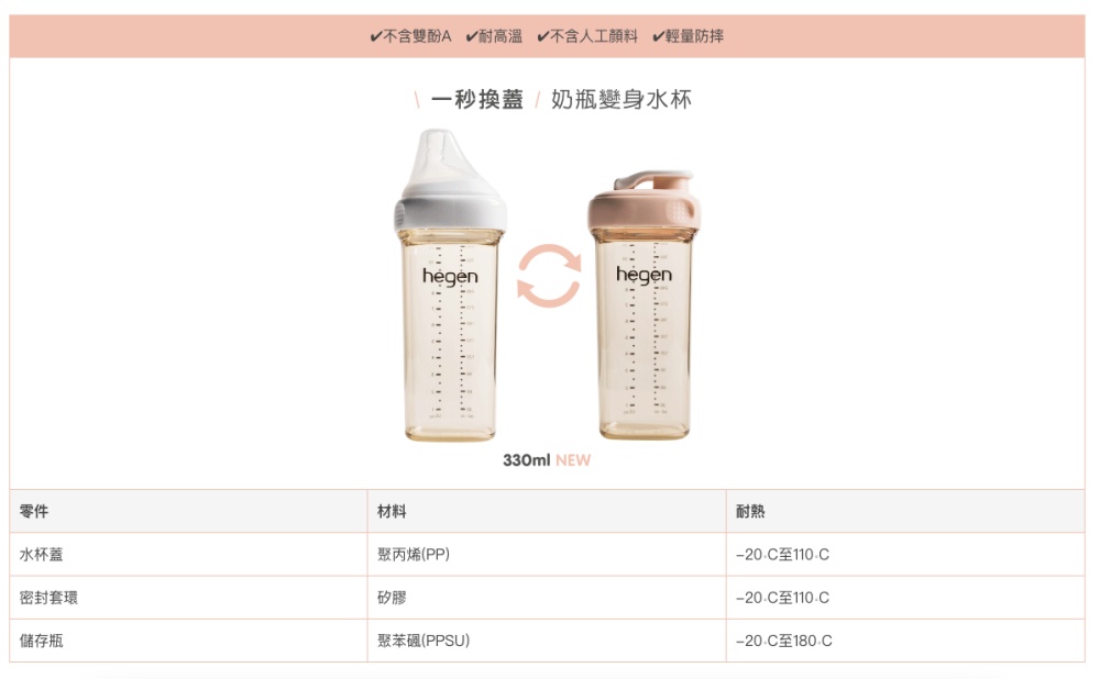 1 x hegen PPSU多功能方圓型寬口水瓶 330ml