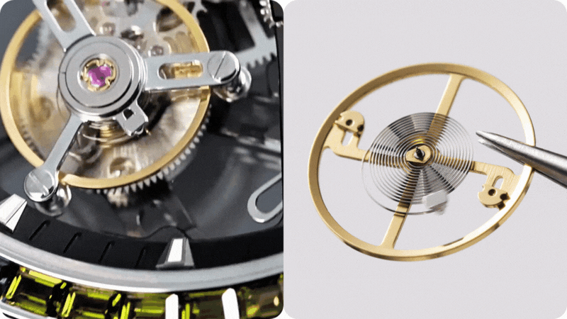 • 技術亮點:自由遊絲擺輪陀飛輪機芯,精度靠直徑僅 0.9mm 的砝碼微調,加工精度控制在 0.001mm。