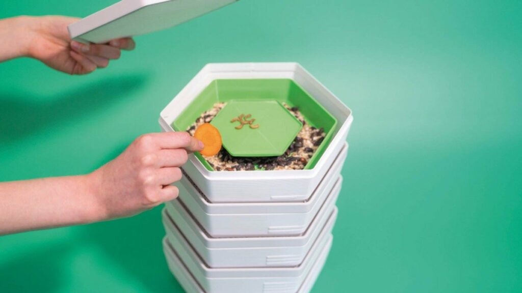全球糧食短缺將會是我們未來遇到的問題,有沒有想過可持續的營養補充方法? BeoBia 研發出世界上第一個真正可持續的昆蟲生態箱— Re_ 。它可讓您創建健康且可持續的蛋白質來源。Re_簡單易用,由五個模塊化托盤組成,可以放在家裡的任何地方。可以將您的水果和蔬菜廢物餵給麵包蟲,其蛋白質含量超過54%,也可以將其糞便用作植物肥料,做到真正的可持續解決方案! 成蟲後以高熱油炸或烘烤兩三分鐘,再磨碎或整頓食用,使其成為鹹味或甜食的絕佳蛋白質添加劑~