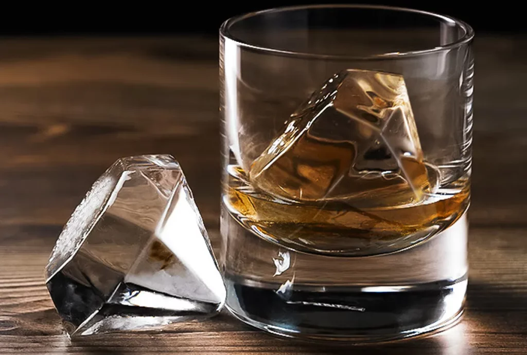特製的大冰球與一般的小冰塊,雖然只是大小不同,但卻有著顯著的差異。正方體的小冰塊的八個角會優先融化,因為其接觸面積大,降溫時也比較容易化成水。而大體積的冰球則能充分佔據杯中的空間,使整個杯內環境均勻冷卻,融化速度相對較慢。因此,放入大冰塊或冰球,不僅能增強視覺效果,延長冰鎮的效果,還能激發威士忌的香氣,減弱酒精的刺激感,最大程度維護酒體的口感及品酒體驗。