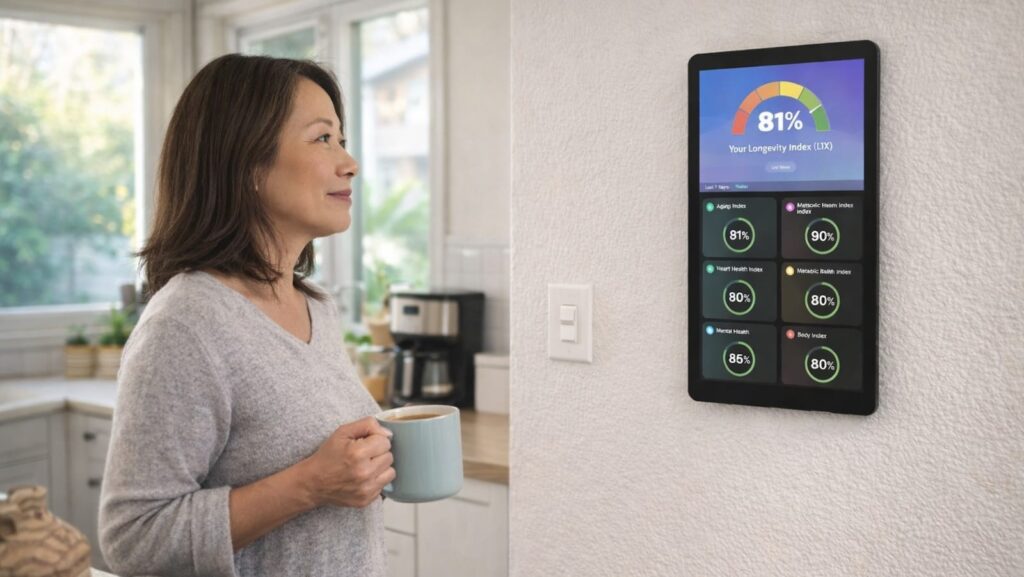 這就是「長壽健康站 (Longevity Station)」誕生的原因。它完全顛覆了我們對健康裝置的想像。它不再專注於你走了多少步,而是透過分析與心血管健康、新陳代謝功能、神經完整性,甚至是細胞老化相關的生物標記,來預測你長期的健康風險。