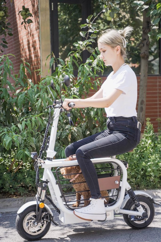 Mopet 寵物電動車重約 25 公斤,可摺疊收納,也能放在汽車後背箱;車身前後裝置了 LED 燈,讓其他駕駛在夜晚也能清楚看見馬路上的 Mopet。