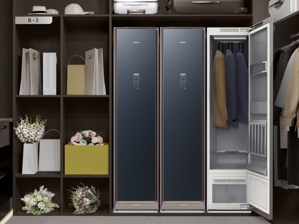 有些衣服布料上乘,不適合水洗,有些衣物洗後會變型,送出乾洗須時等候,Samsung AirDresser 正是專屬私人乾洗機,有女衣櫥外型,只需放入掛著的衣服、大衣,即時自動蒸洗殺菌。方便快捷,不怕傷害衣物更無須長時間等候,智能家居必備!!