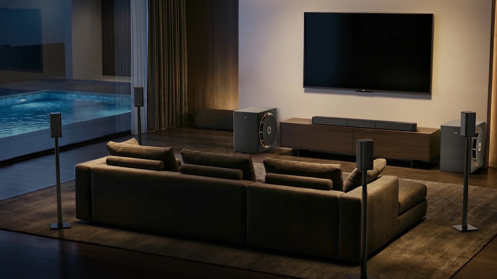 這套系統不只提供水平環繞音效,更加入了六個向上發聲的聲道和側發聲環繞喇叭,創造出真正的 3D 音場。這意味著聲音不再只是從四面八方而來,還能從上方、側邊傳遞,讓電影中的直升機從你頭頂呼嘯而過,或是雨點從天而降的感覺更加真實。這種全方位的音效體驗,將你的感官完全包圍,讓你徹底忘卻現實,投入到眼前的影音世界。