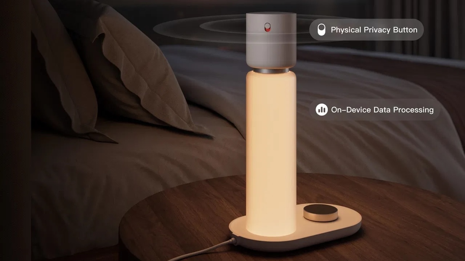 在享受智能科技帶來便利的同時,隱私問題總是讓人擔憂。SLEEPAL AI Lamp 深知你的顧慮,採用了「隱私優先」的設計理念。所有數據都在本機端處理,沒有光學鏡頭,還特別配備了硬體隱私開關。這一切的設計,都只為確保你的隱私安全,讓你安心無憂地享受智能睡眠帶來的舒適。