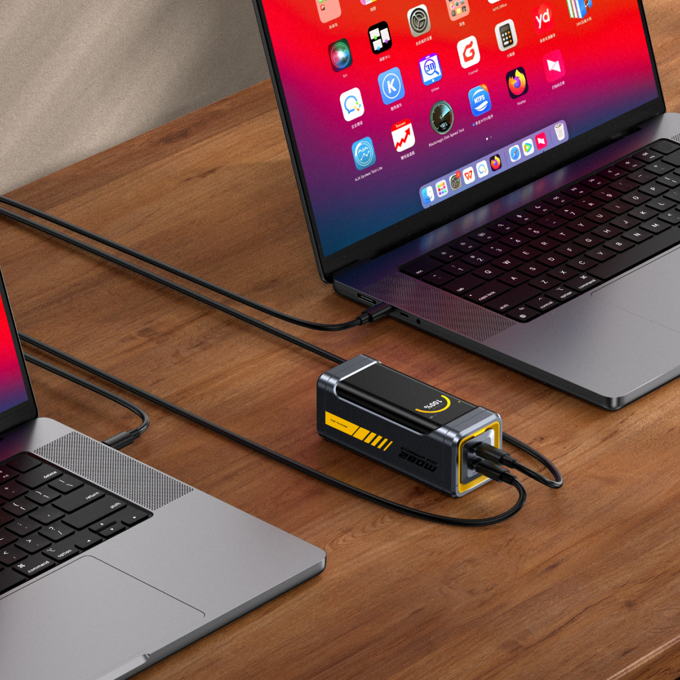 今日小編為大家介紹呢個行動電源,共有兩個140W功率的插口,最高總計輸出可達210W,佢同時配備LED螢幕顯示實時電量,30分鐘就可以將行動電源充滿電。快充式設計即使在較大型電器有效,1小時左右就可以將Macbook Pro或是Switch由0%充電到100%,輕盈小巧的大小亦方便用家攜帶使用,絕對係出外必備嘅行動電源呀!