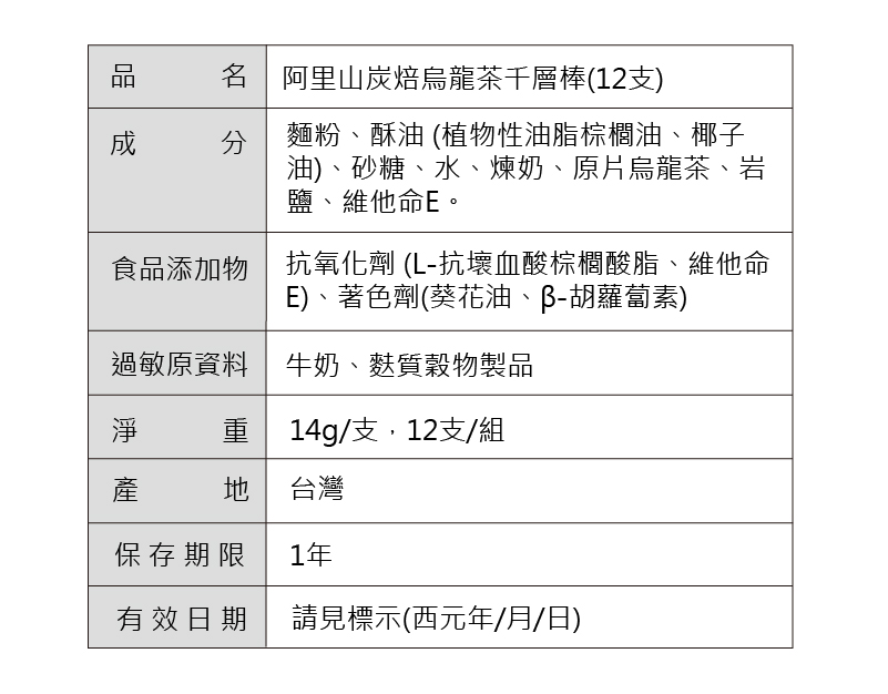 保存期限:茶葉2年、千層棒1年。