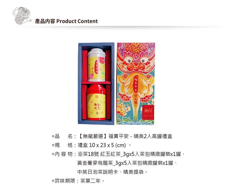 規格:(禮盒)10 x 23 x 5 cm / (提袋) 23 x 18 x 12cm