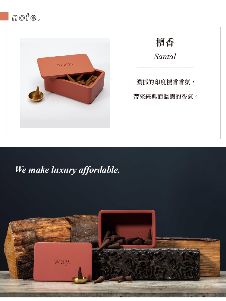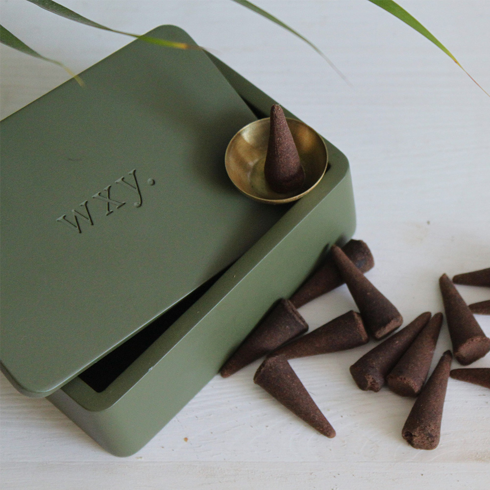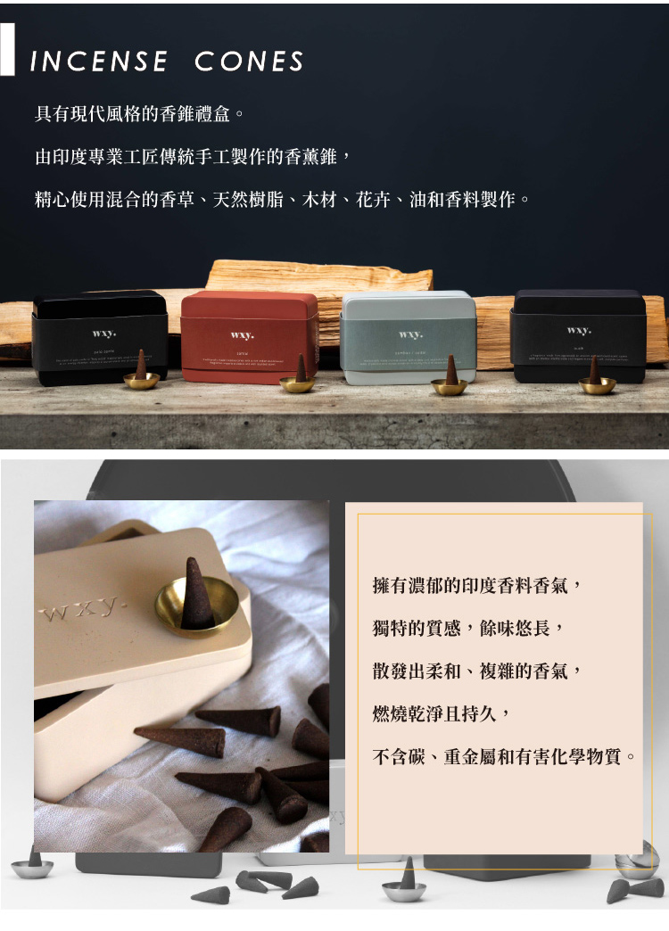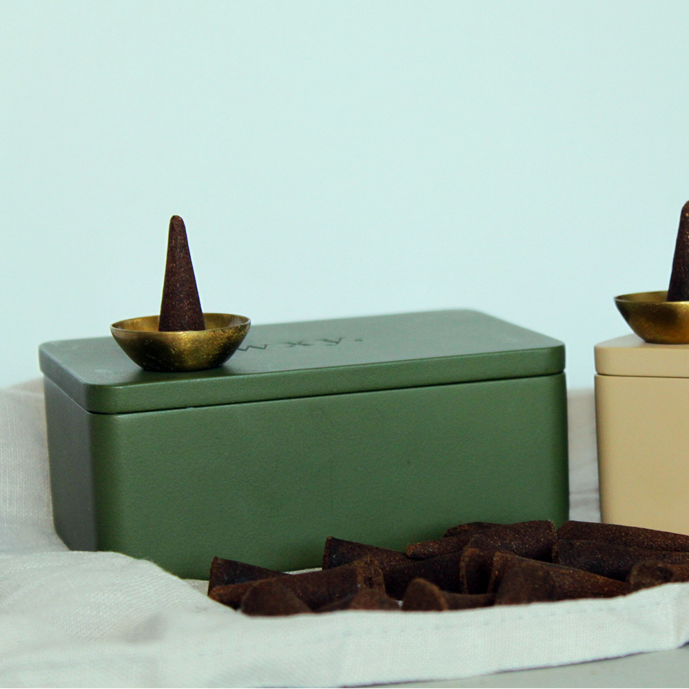 具有現代風格的傳統香錐禮盒。由印度專業工匠傳統手工製作的香薰錐, 精心使用混合的香草、天然樹脂、木材、花卉、油和香料製作,擁有濃郁的印度香料香氛和獨特的質感,餘味悠長,散發出柔和、複雜的香氣。