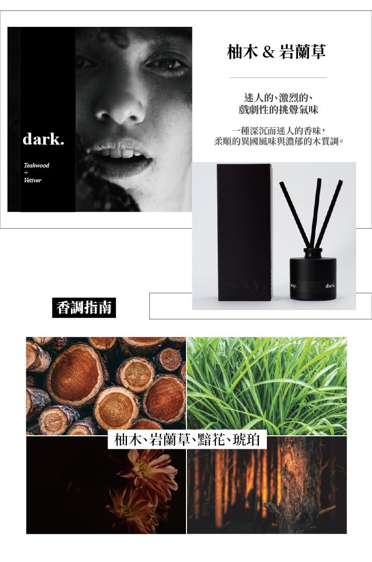 ●一種深沉而迷人的香味,柔順的異國風味與濃郁的木質調。