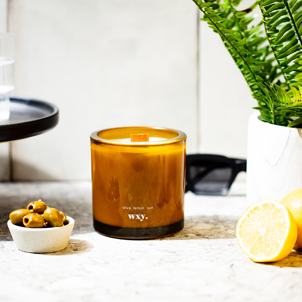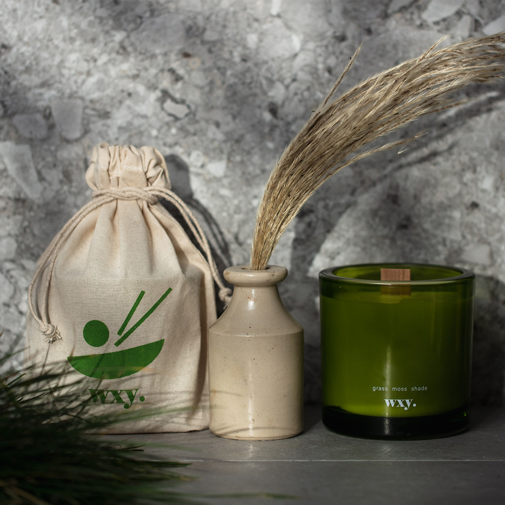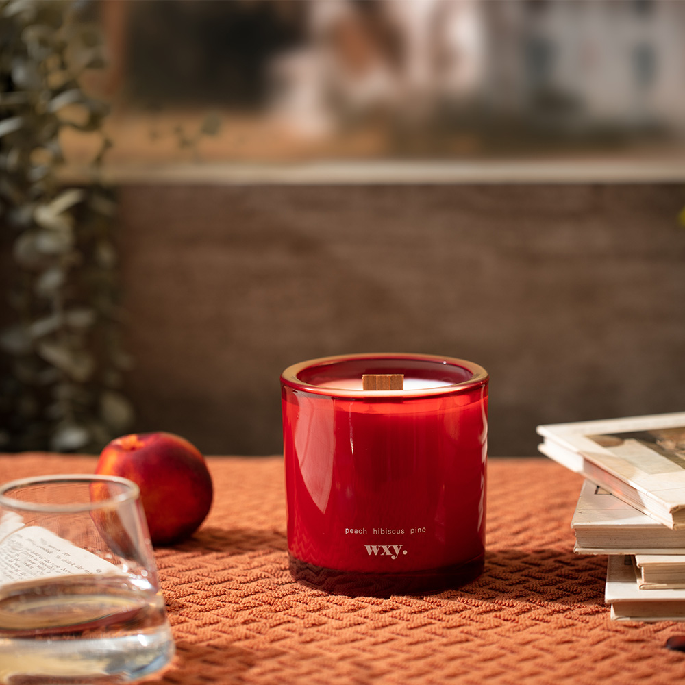 以wxy最受歡迎的Amber系列延伸設計,獨特的彩色厚瓶蠟燭,附帶圖案的環保棉質抽繩袋,100%大豆蠟製作,使用天然的木質作為燭芯。