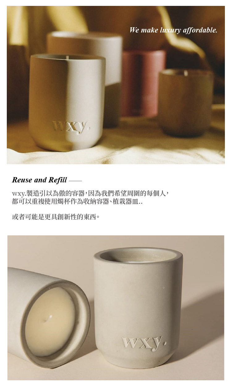 簡約的禮品蠟燭,精緻硬盒包裝,光滑的混凝土瓶設計,可轉變成收納或植栽容器,專為你的家而設計。