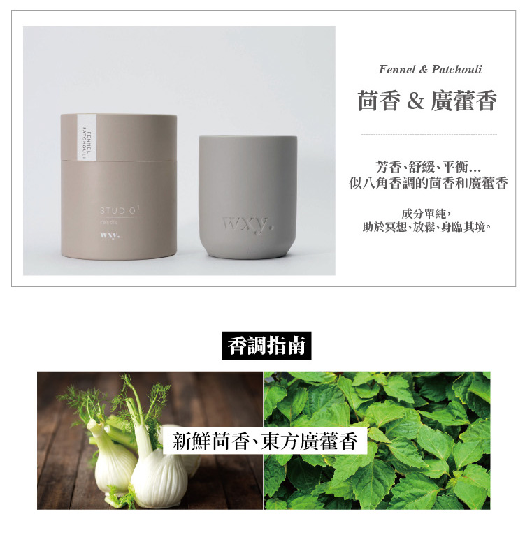 品名:wxy Studio1蠟燭- 茴香 & 廣藿香