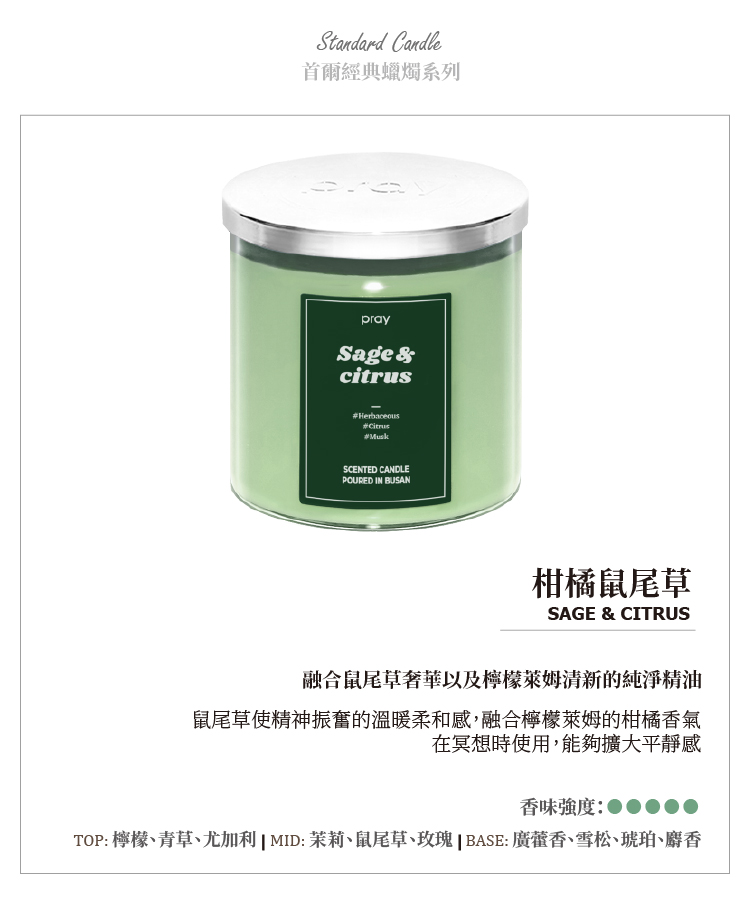 品名:PRAY韓國經典天然香氣蠟燭系列 – 柑橘鼠尾草