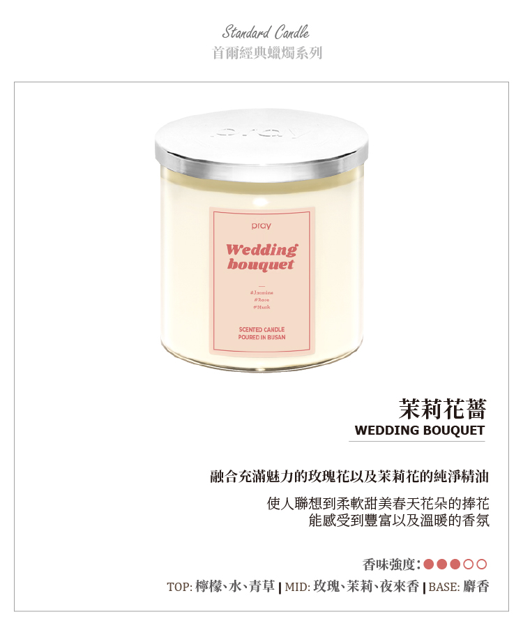 品名:PRAY韓國經典天然香氣蠟燭系列 – 茉莉花薔