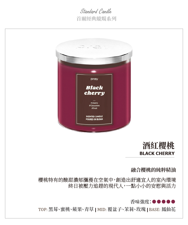 品名:PRAY韓國經典天然香氣蠟燭系列 – 酒紅櫻桃
