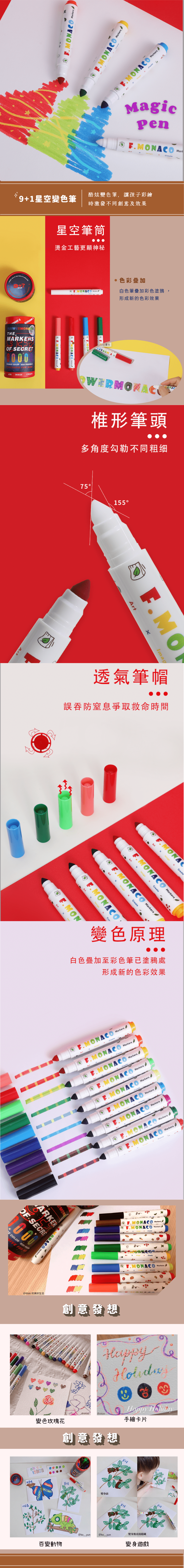 【Flowermonaco 兒童美術用品】兒童星空彩繪變色筆 9+1 (品牌直送)