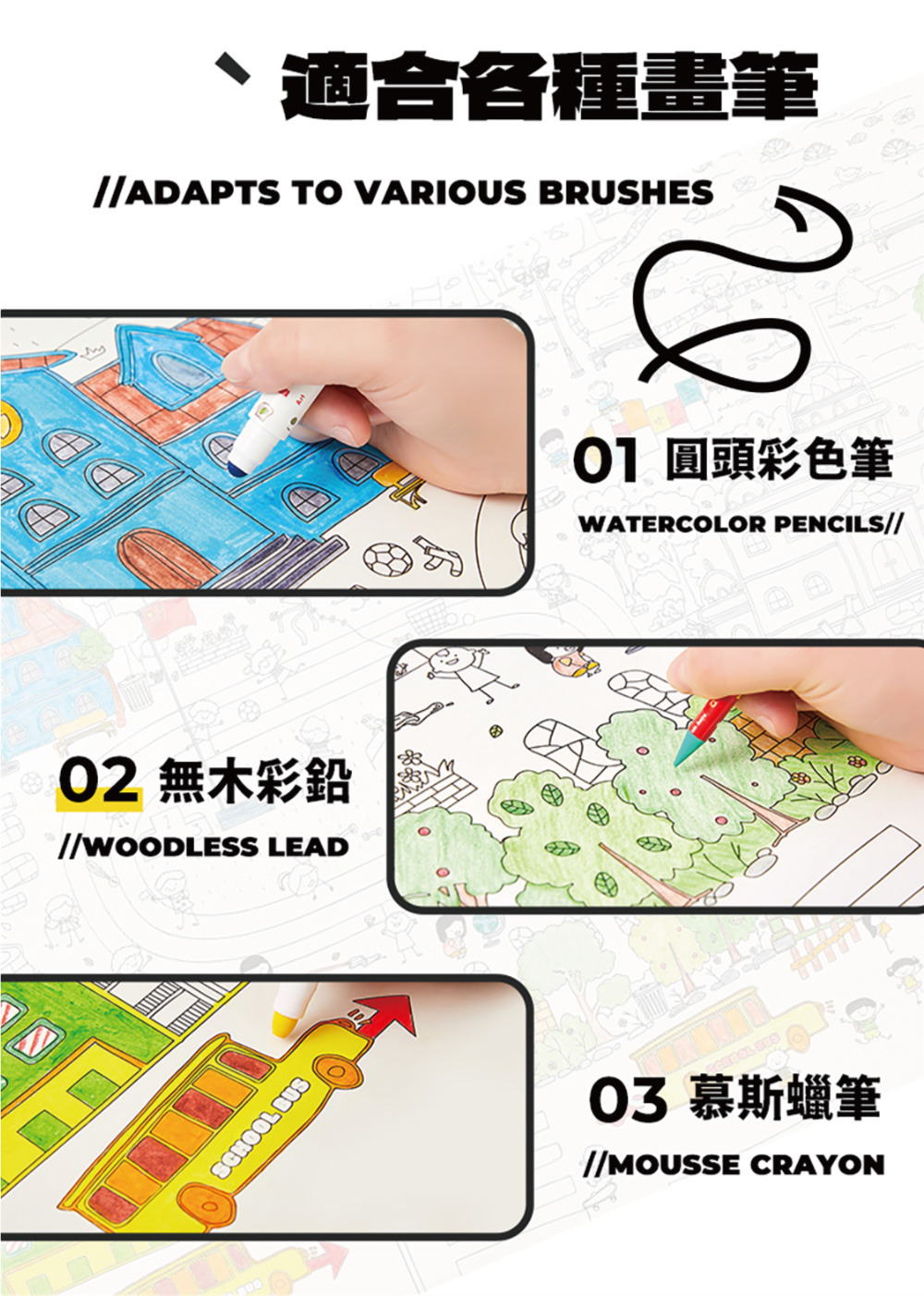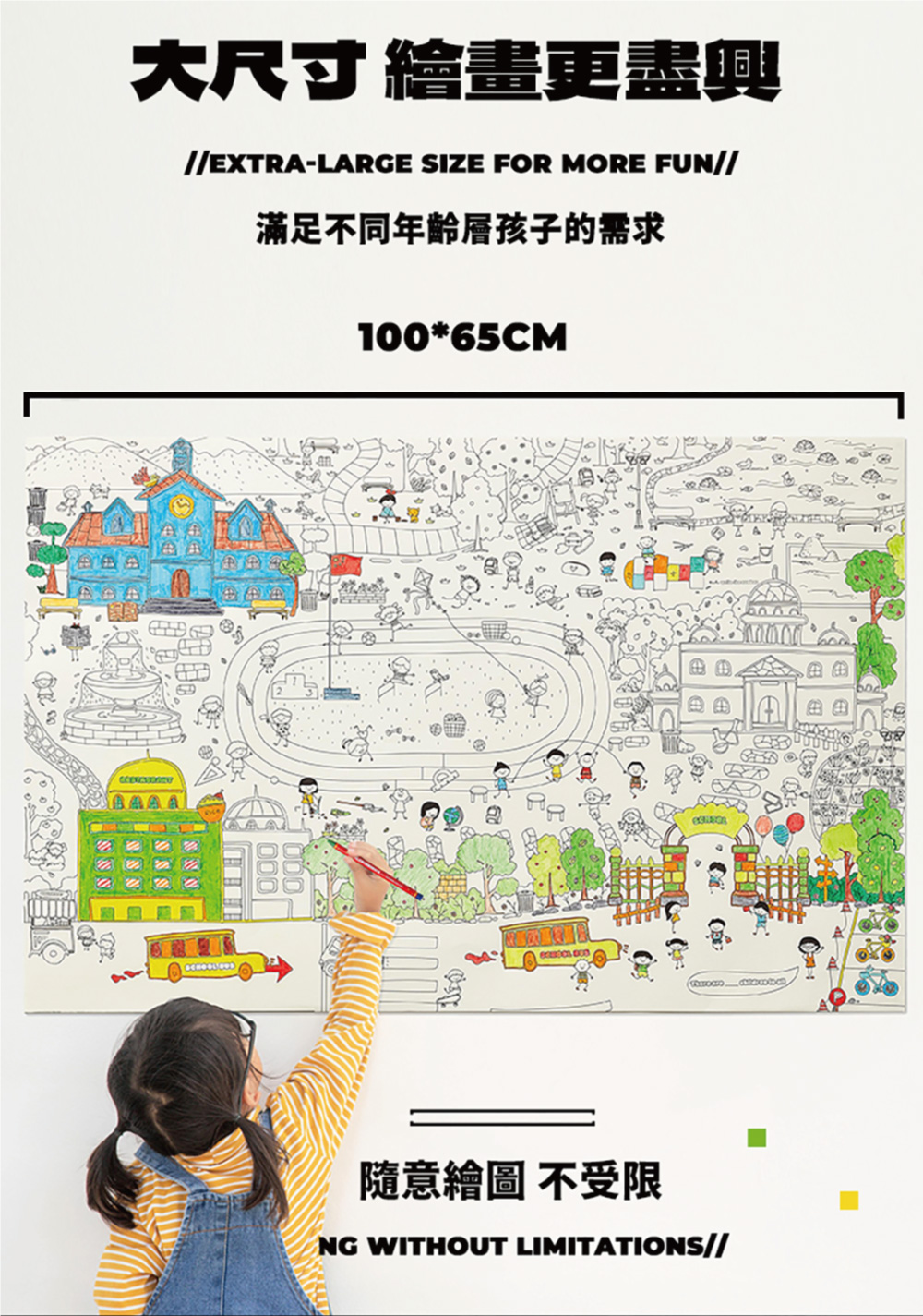 超大尺寸著色彩繪紙,滿足孩子著色成就感