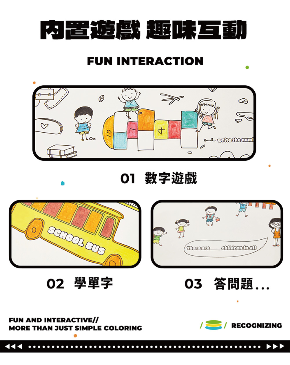 暗藏益智遊戲:迷宮、數字遊戲、謎語。藉由繪畫學習知識
