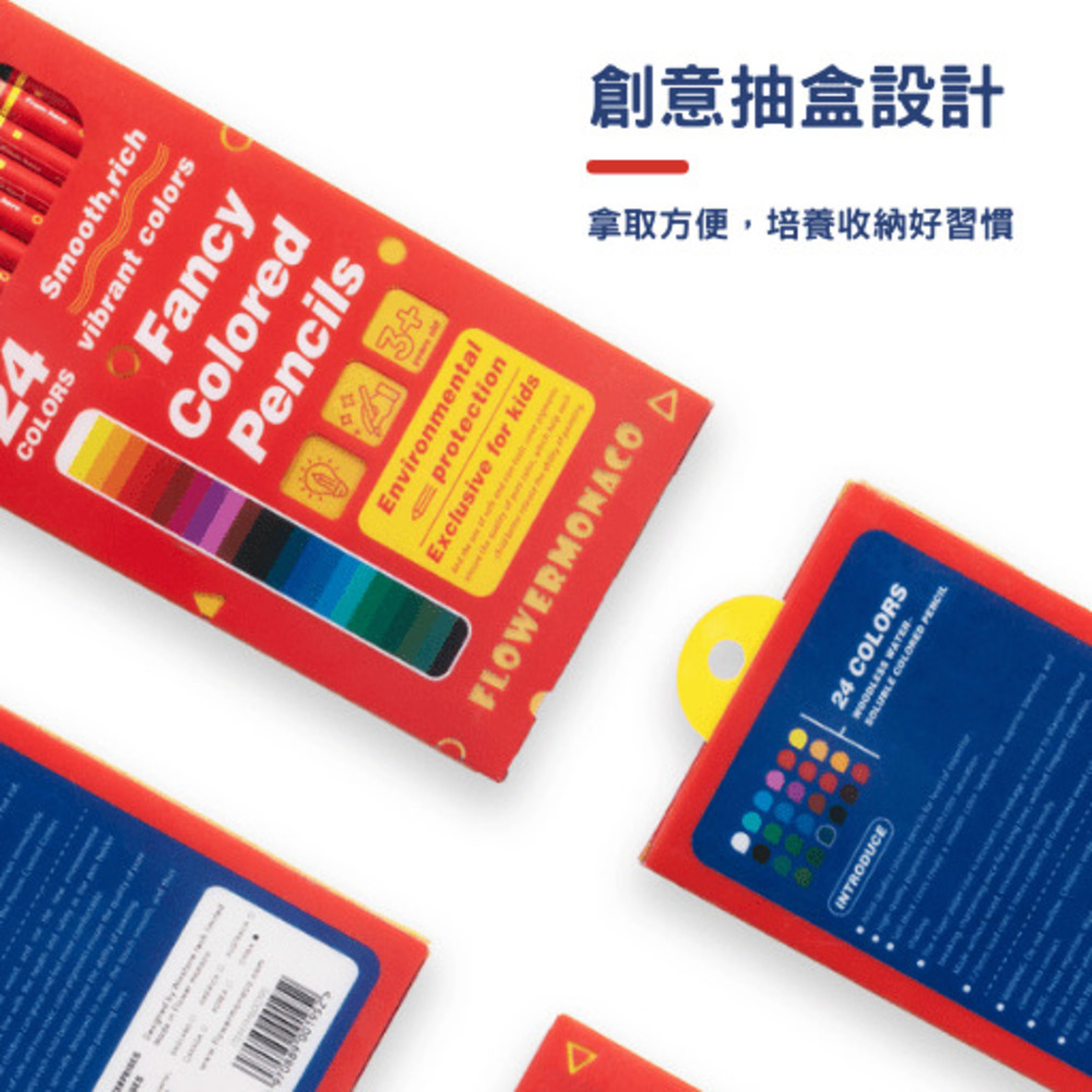 抽盒設計,拿取方便不費力;筆尾色彩標示,取色方便