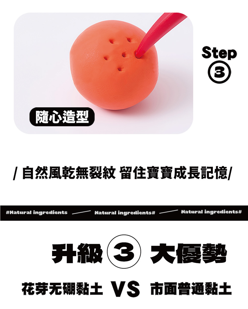 捏扁搓圓 輕鬆造型 :自然風乾無裂紋 留著寶寶成長記憶