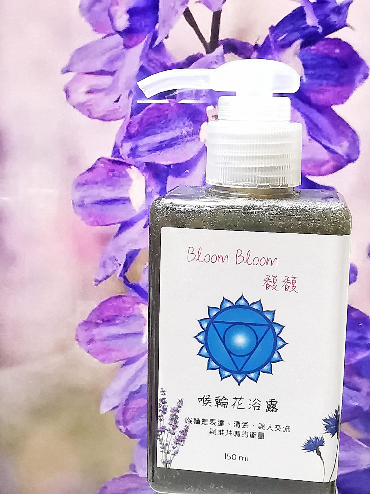 喉輪花浴露就是調和你能量狀態的妙招,我們是以薰衣草、蝶豆花、薄荷、矢車菊為主調,讓喉輪平衡、提升、擴展、流動