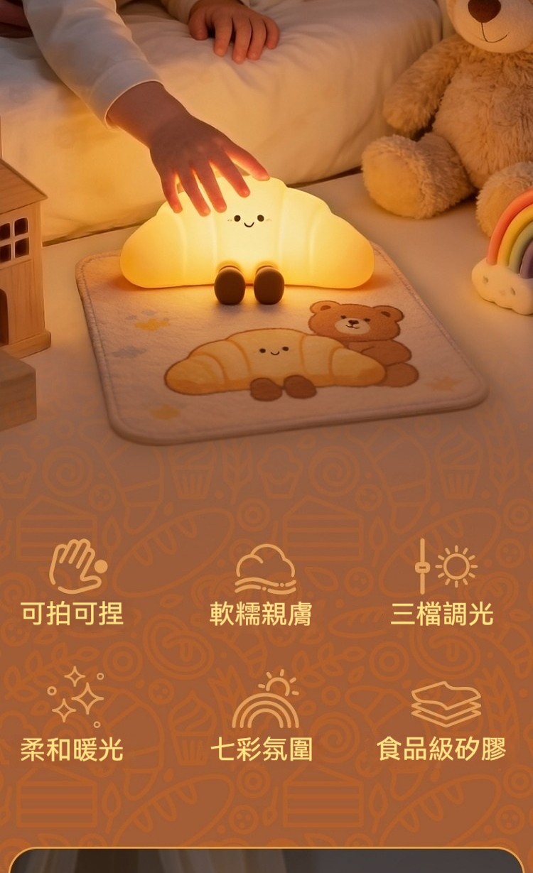 牛角包矽膠小夜燈2.5W (品牌直送)