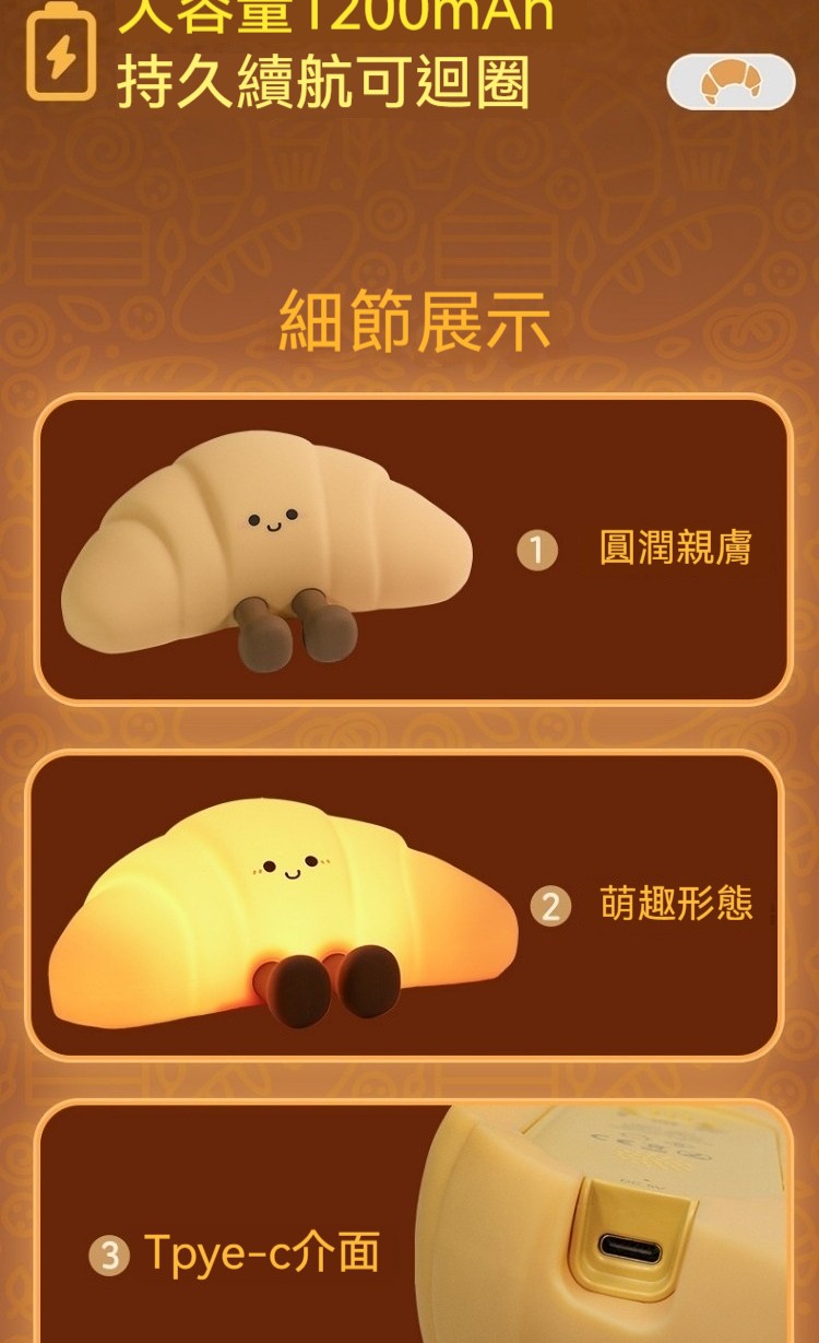 搶先留言 “牛角包矽膠小夜燈2.5W (品牌直送)”