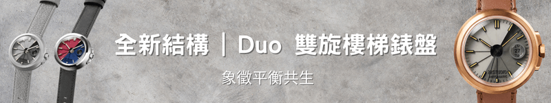 這兩座樓梯,象徵著生命中那些看似對立、實則共生的力量。它們在錶盤上優雅旋繞,雖不相交,卻在同一時空中完美並存。沒有誰壓倒誰,也沒有誰取代誰,而是構建出一種幾何學上極致的穩定與協調。清水模材質特有的量感與質樸,為這款錶帶來了沈靜的氣息。看著指針在兩座樓梯間流轉,你會發現,真正的寧靜並非來自於逃離忙碌,而是來自於內心的秩序。Duo 想要訴說的是,無論外在世界如何極端,只要心中保有這份雙向的平衡,就能在時間的洪流中,築起一個穩固堅實的自己。