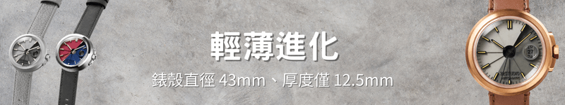 為了讓機械腕錶更加融入日常生活,我們從裡到外重新設計了四度空間機械錶,錶殼直徑從45降到43mm,錶殼厚度從14.5降到12.5(加上玻璃後整體厚度由14.7mm降低至14.5mm),保持四度空間系列空間感的同時,讓配戴舒適性大幅提升。