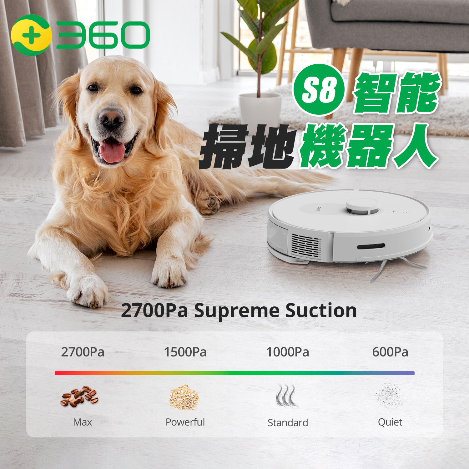 - 2700Pa 超強吸力,4 個可調吸力檔位