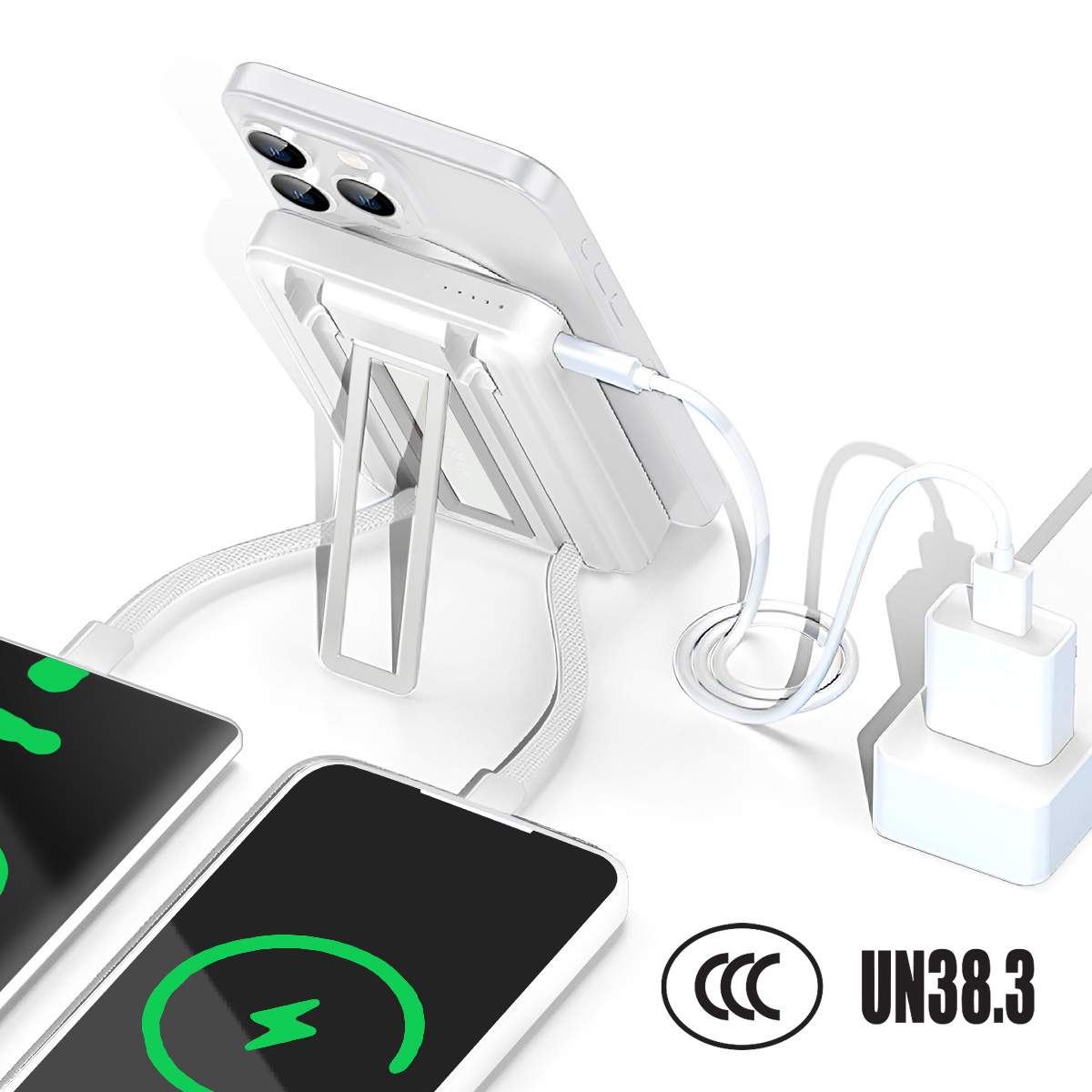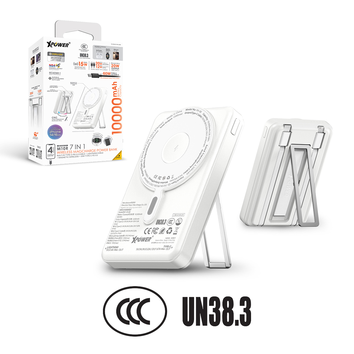 (3C認證版)M10R 7合1 10000mAh PD 3.0 雙內置線+磁吸無線移動電源連支架