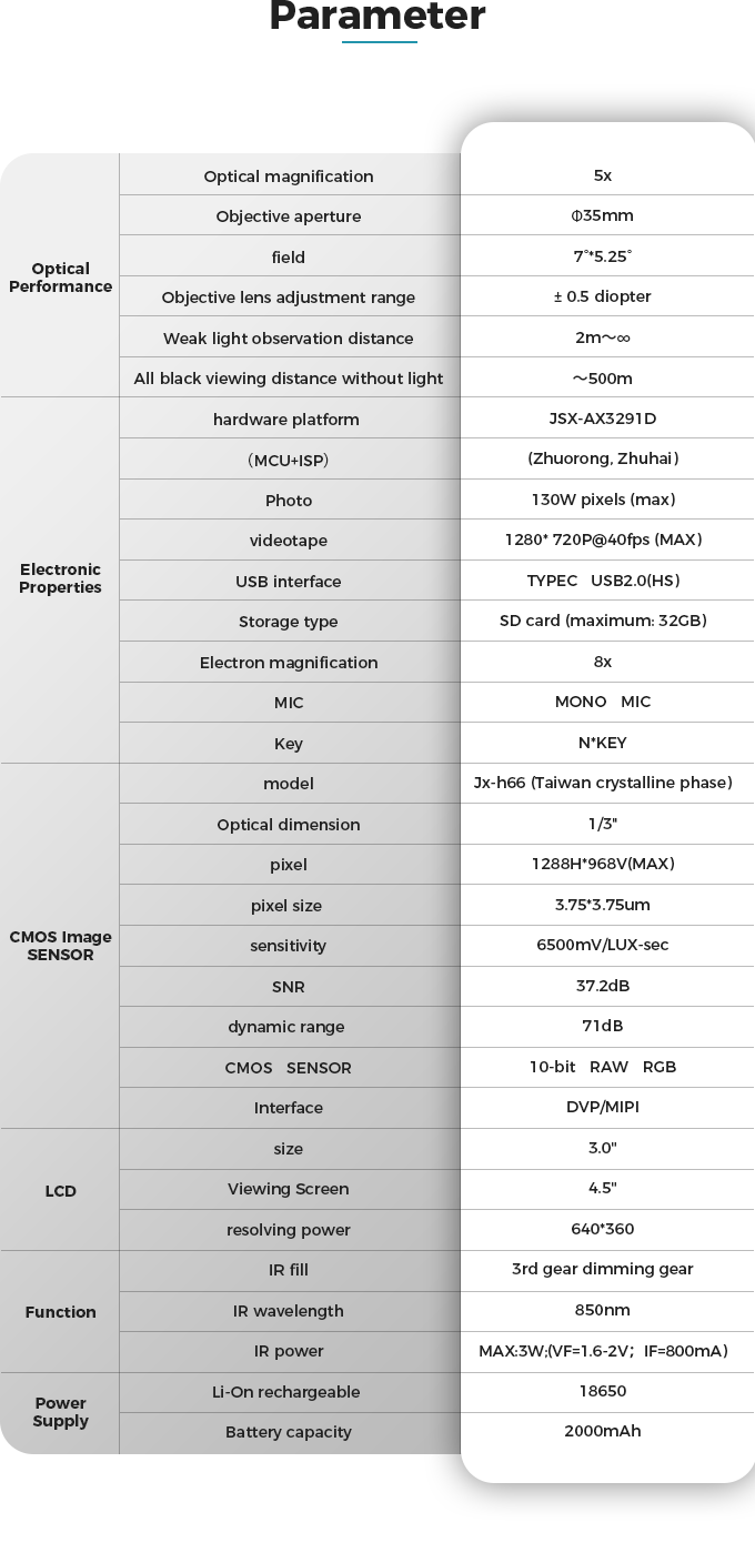 ACPOTEL 間諜級夜視望遠鏡產品規格