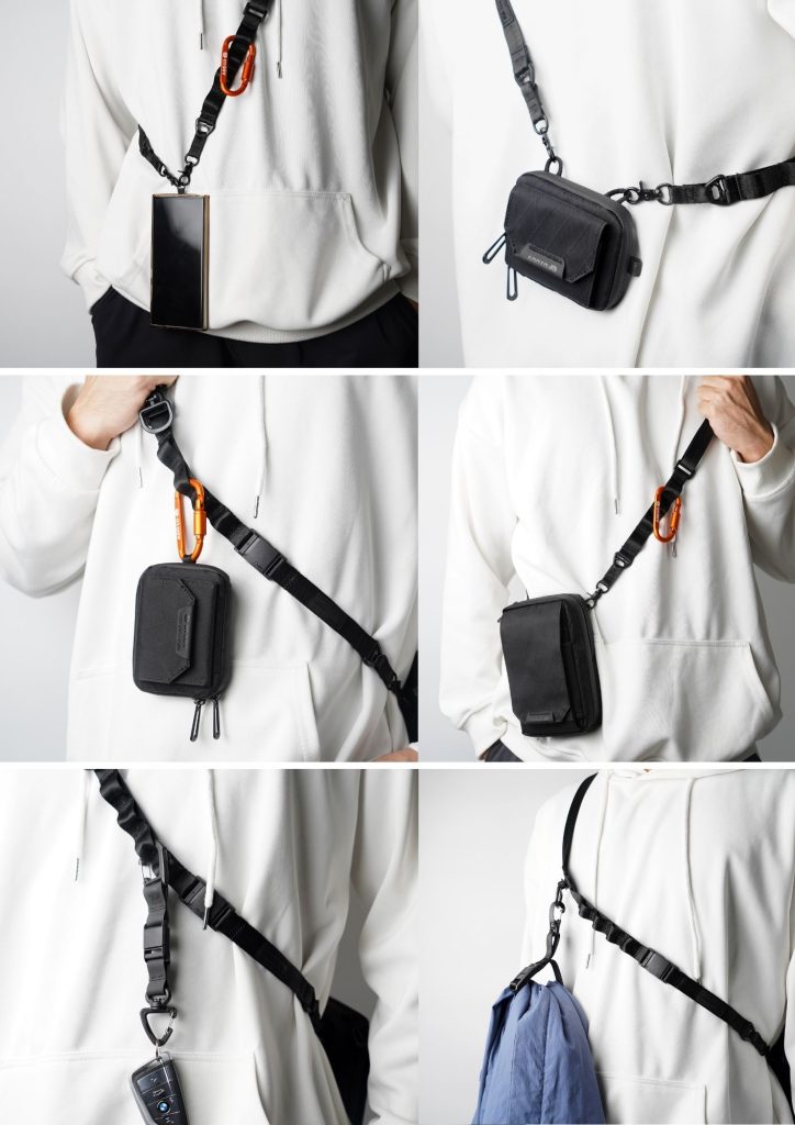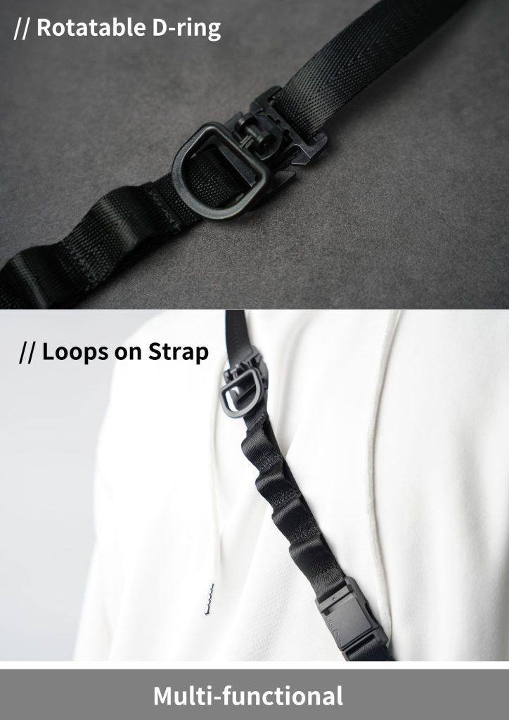 可旋轉的 D 型環和背帶上的多個循環設計,為您提供多樣的搭配方式,隨心所欲地調整使用方式。適合與 D2D Pouch V2 和 D2D Pouch Nano 完美搭配。