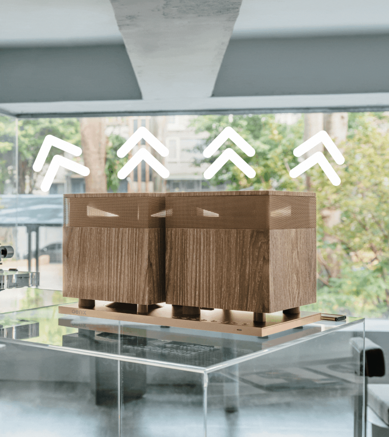 強大的垂直驅動單體將向下壓縮空氣至各個單元,不論身在何處,每一次的震動都能將聲音均勻一致推向四周。