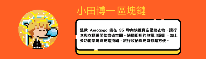 A:Aerogogo 迷你掛件式自動抽真空+充氣泵 輕巧便攜設計,以生活充氣用品為主,並不支援球類輪胎充氣