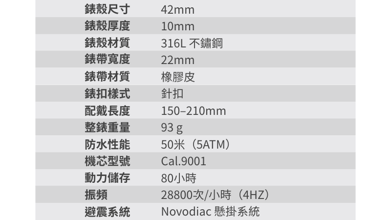 振頻為28,800次/次(4HZ),將每日誤差控制在±15秒以內
