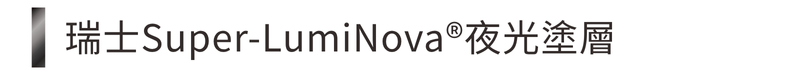 腕錶指針和時標皆塗上 瑞士Super-LumiNova®夜光塗層,夜光效果可無限次重複,且不受使用年限限制