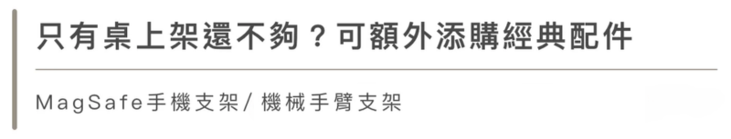 你是不是也是手機不離身呢?光是有桌上架還不夠?你也可以根據自身的情況添購許多實用的周邊配件,像是MagSafe手機支架、iPad 磁吸充電懸臂,都是實用的小配件呢!