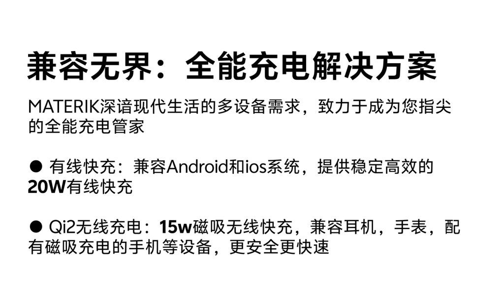 – 支持Qi無線充電手機/耳機進行非磁吸無線充電