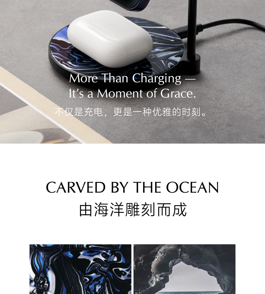 • Alchemy紋理充電底座 – 兼容Airpods、Qi充電技術設備手機、耳塞耳機(不支持非無線充電設備)