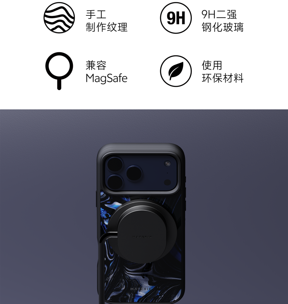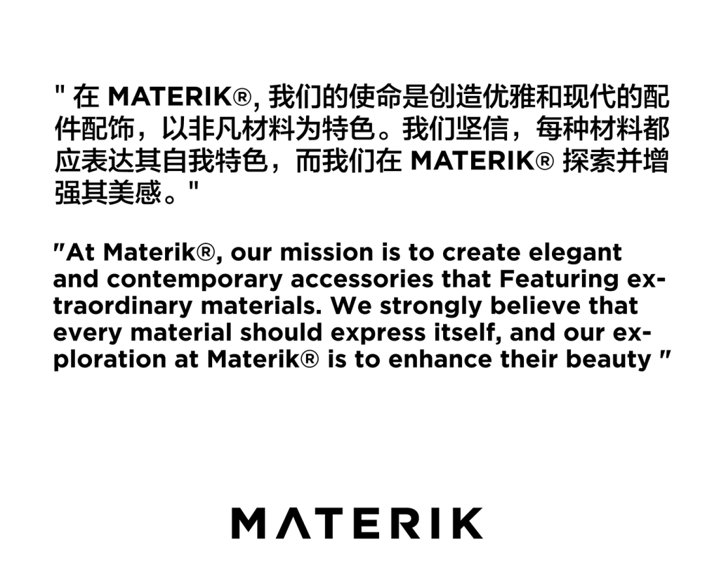 Materik® – 源自香港的現代生活產品設計品牌,自成立以來一直秉持為現代生活提供獨特性和美感的理念,並持續地發掘獨特出色的物料,設計出非同凡響的生活配件配飾。Alchemy系列利用獨家手工制作的珍珠母貝原料,結合纖維素和有機物,創造出獨特優雅的質感,每個圖案獨壹無二,展示深沈的美態。
