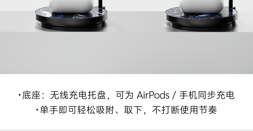 • Alchemy紋理充電底座 – 兼容Airpods、Qi充電技術設備手機、耳塞耳機(不支持非無線充電設備)