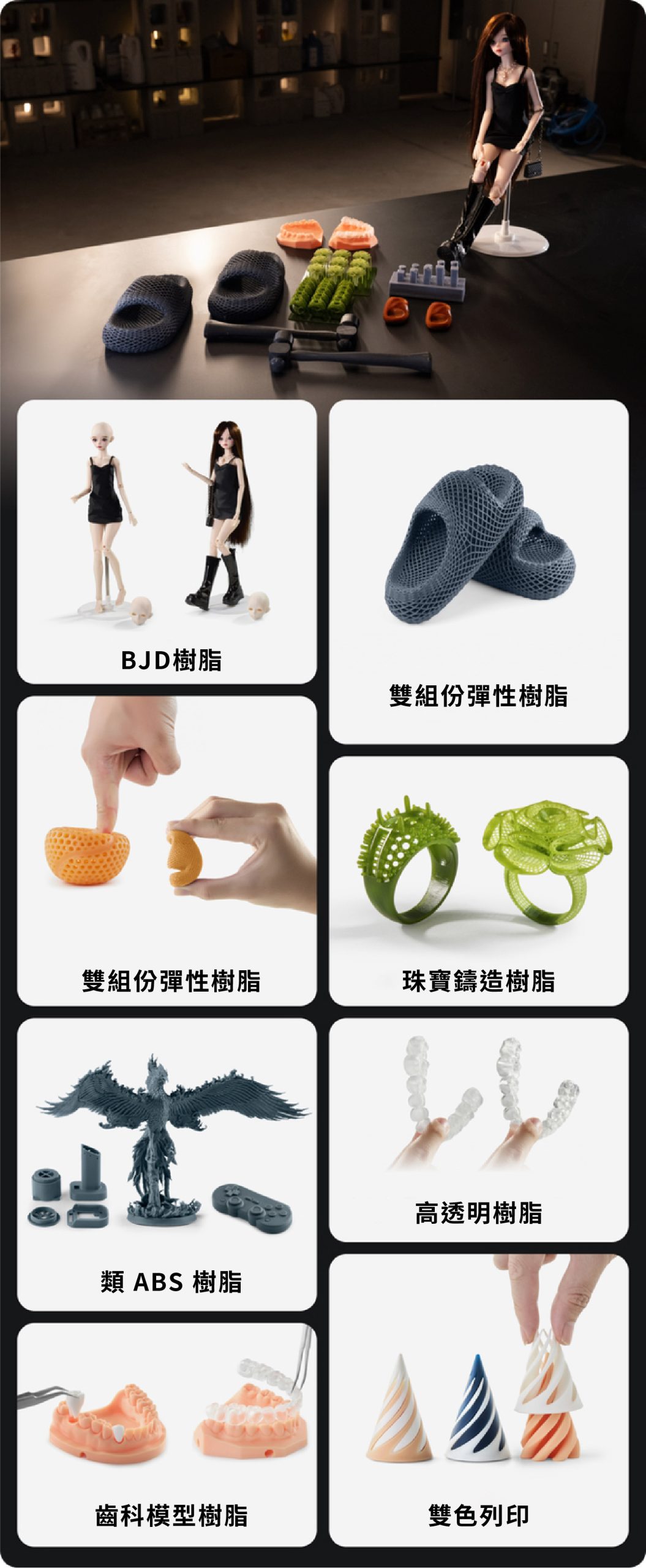 ▼應用樹脂與成品展示