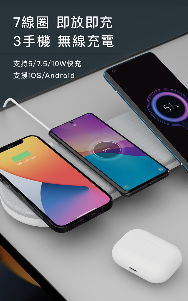 為 iPhone 12/13 系列提供最大 7.5W 的充電。要以 15W 為 iPhone 12/13 系列充電,請使用官方 MagSafe 無線充電器。