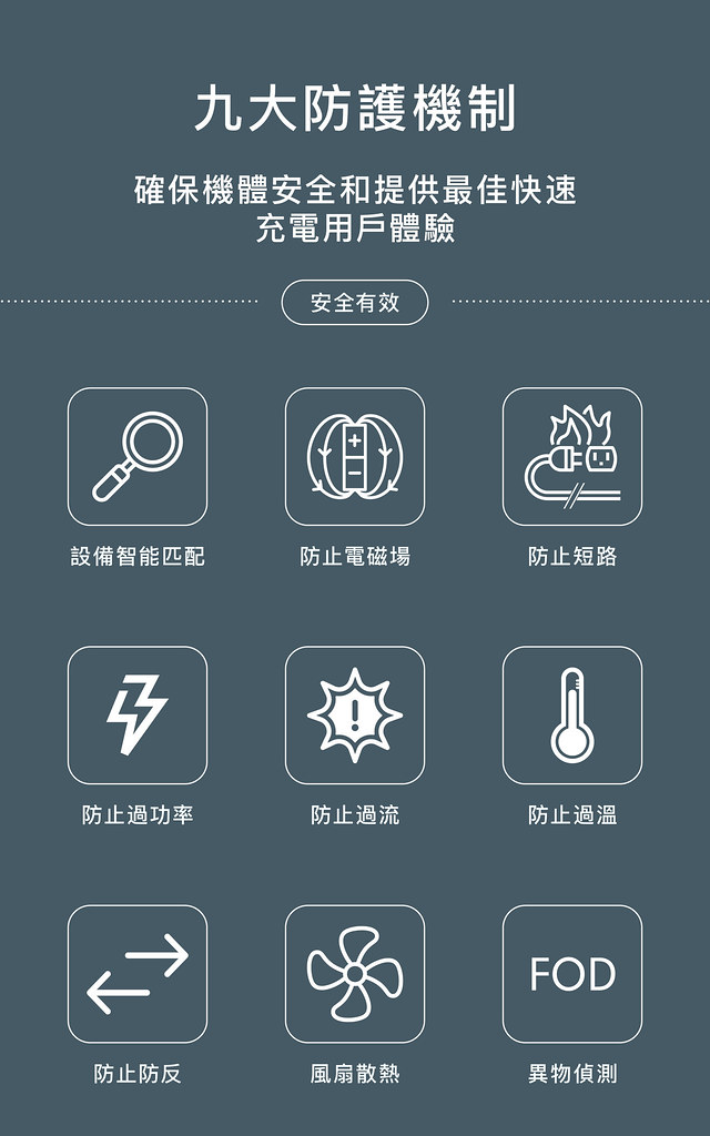 安全放喺第一位!通過雙風扇散熱系統和無線Tx模塊,主動散熱系統不但可以保持更穩定的能量傳輸,還可以防止任何安全隱患。
