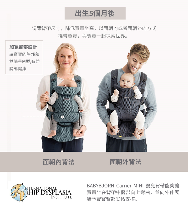 我們希望您在BabyBjörn嬰兒背帶中攜帶孩子時感到安全可靠。這就是為什麼我們所有的嬰兒背帶都是與醫學專家合作開發的。我們的嬰兒背帶使用簡單,將您的孩子抱在一個直立的位置,確保自由的空氣通道,腿部和手臂的自由活動,並為他們的頸部和頭部提供良好的支撐。