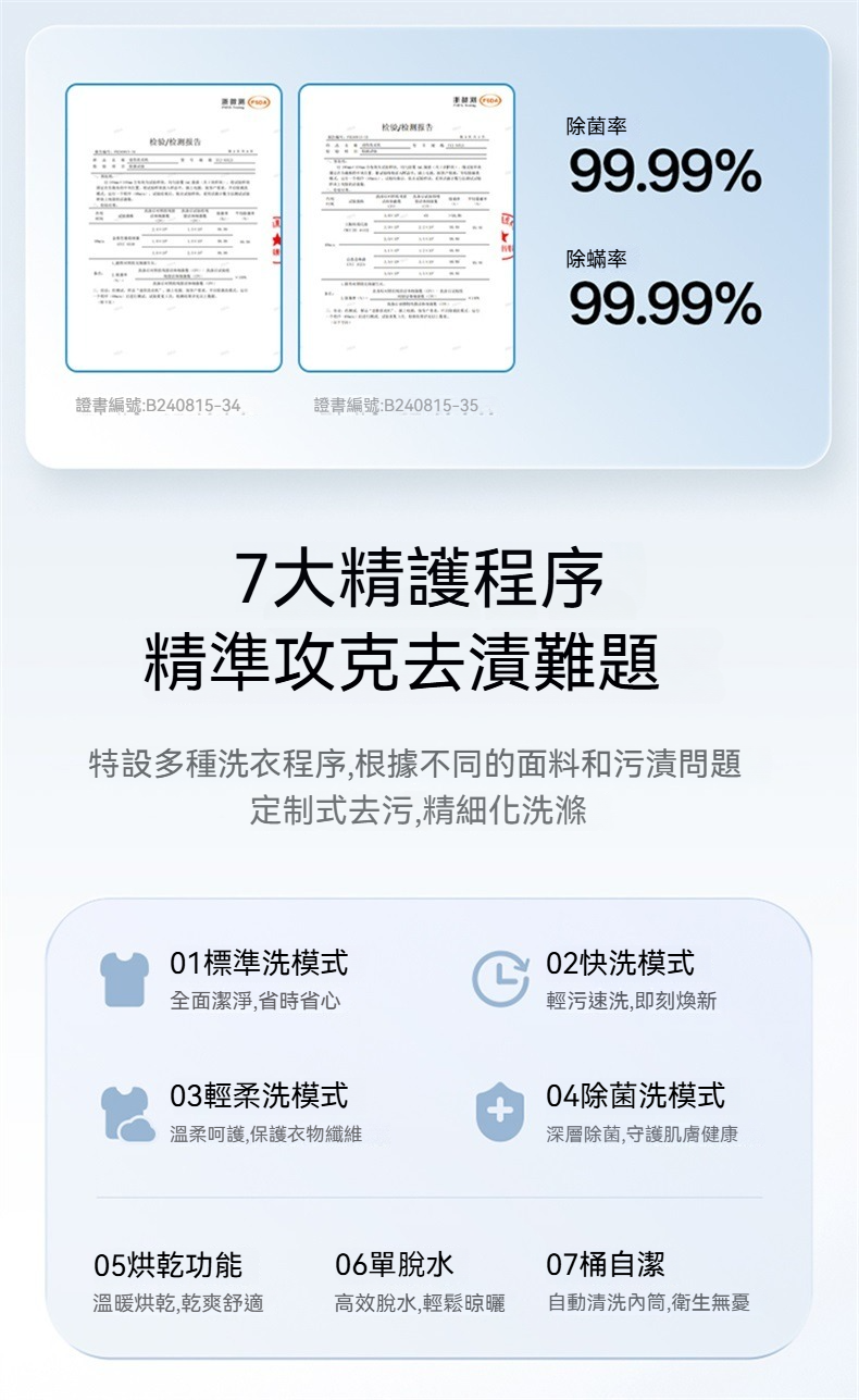 全自動洗脫烘 /99.99%除菌除蟎 /7大精護程序