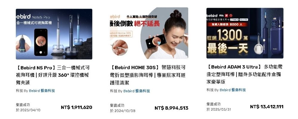 品牌不只在全球受到高度認可,更在台灣曾創下 募資接近破千萬的亮眼成績,證明消費者對產品的信任,也象徵 Bebird 在掏耳界的影響力與號召力。
