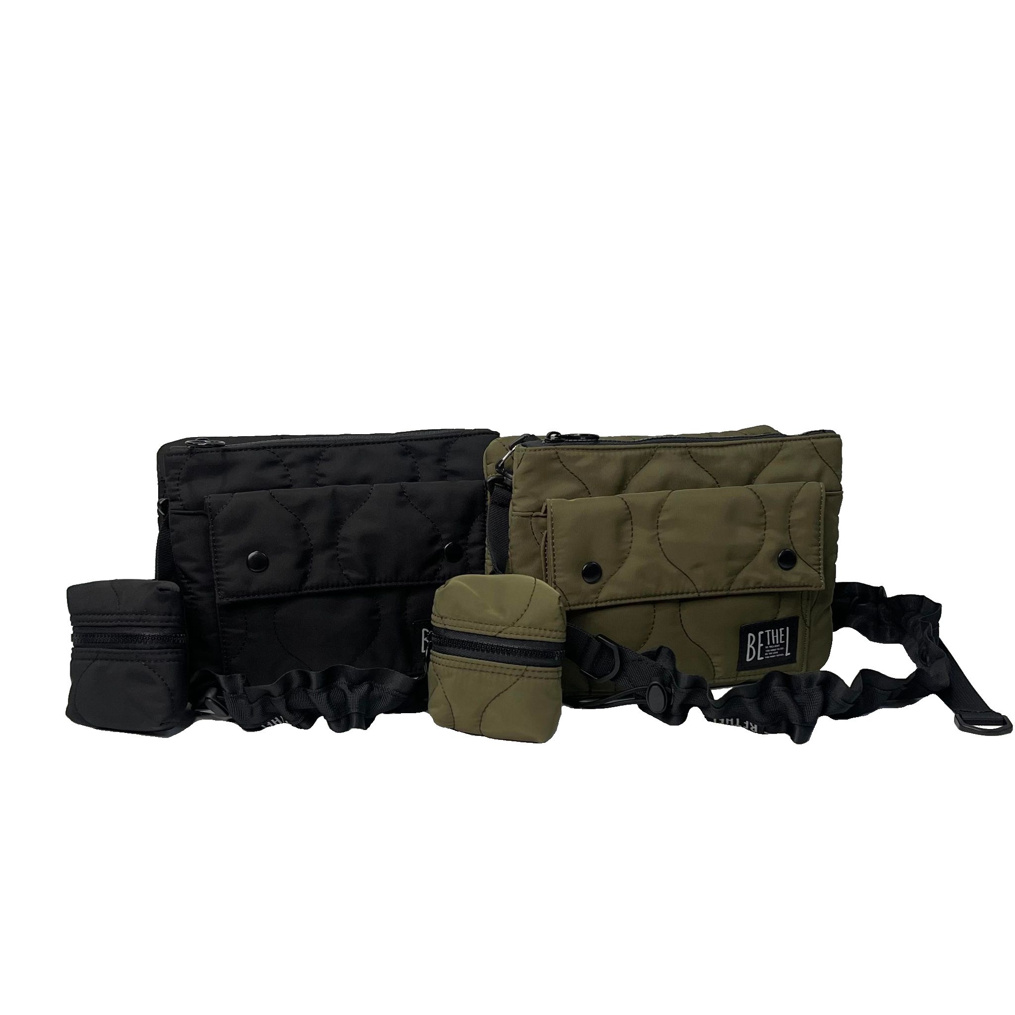 Polyester防潑水面料,加以繡線製作,手感柔軟,面料亦非常耐磨耐重 組合袋可分拆使用 配搭多用途織帶+矽膠手機吊牌 織帶可用作肩帶 或 電話繩使用 隨袋附帶一個迷你拉鍊袋